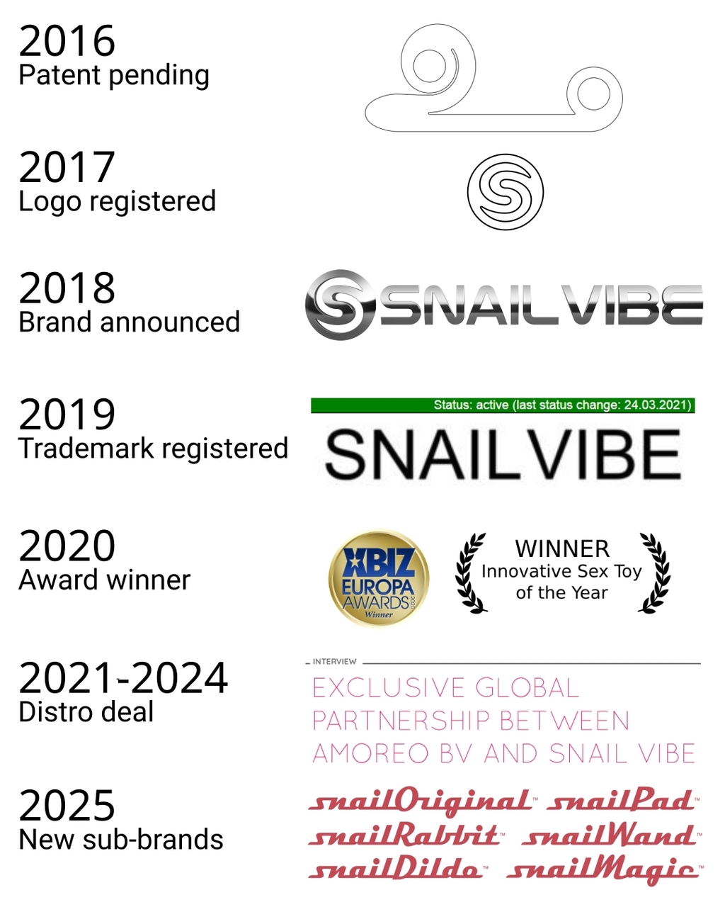 2021: An agreement was reached with the founders of Amoreo BV, granting exclusive rights to sell the Snail Vibe. This agreement was signed until 2024.