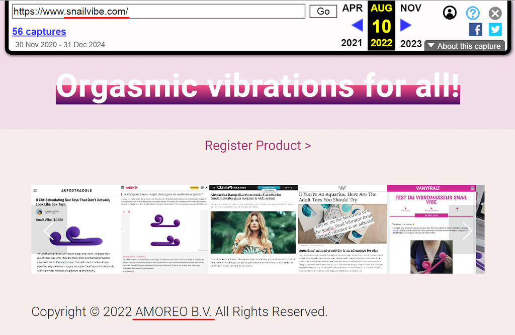 Amoreo is waging a smear campaign to block advertising, sales, and social media for Snail Vibe. As a result, the original Instagram account, @snailvibe, was blocked for several months but was restored after a detailed review. Although Amoreo was the exclusive distributor with access to direct purchases and sales through snailvibe.com, its founders were never a co-founder or investor in Snail Vibe.