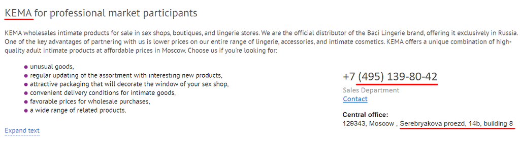 Screenshot of Kema's website https://web.archive.org/web/20190825134040/https://www.kema-opt.ru/