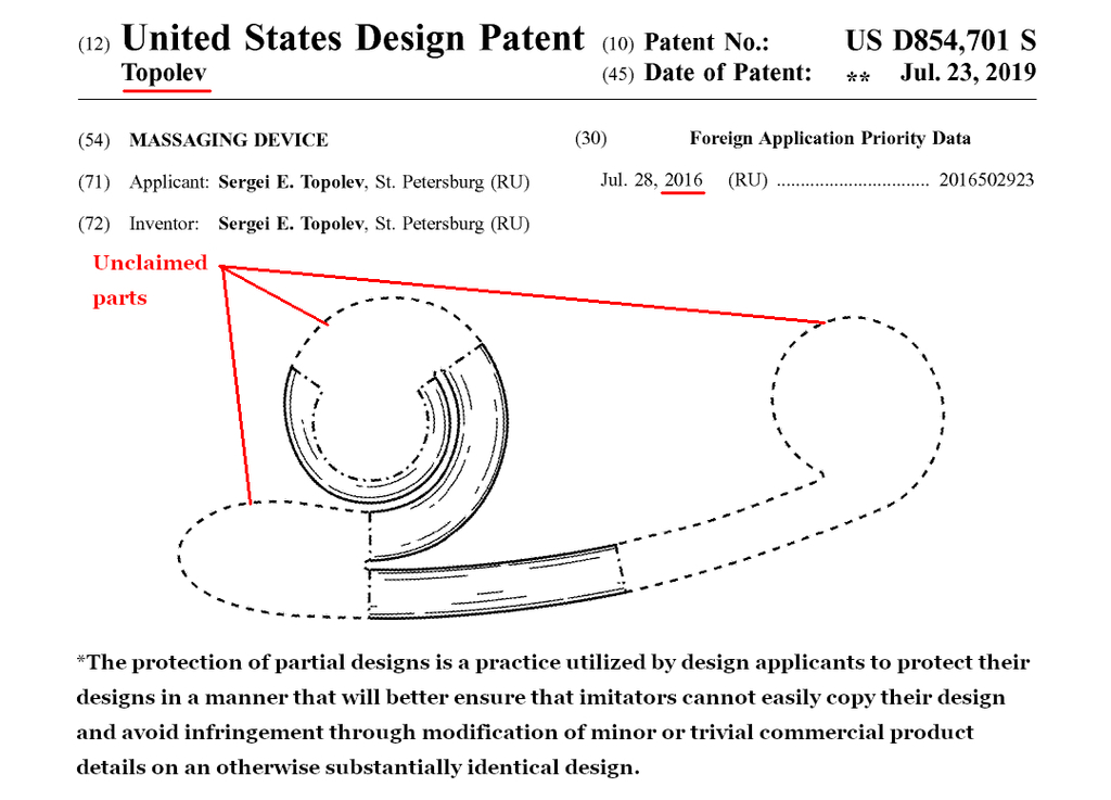 Patent No. US D854,701 https://image-ppubs.uspto.gov/dirsearch-public/print/downloadPdf/D854701